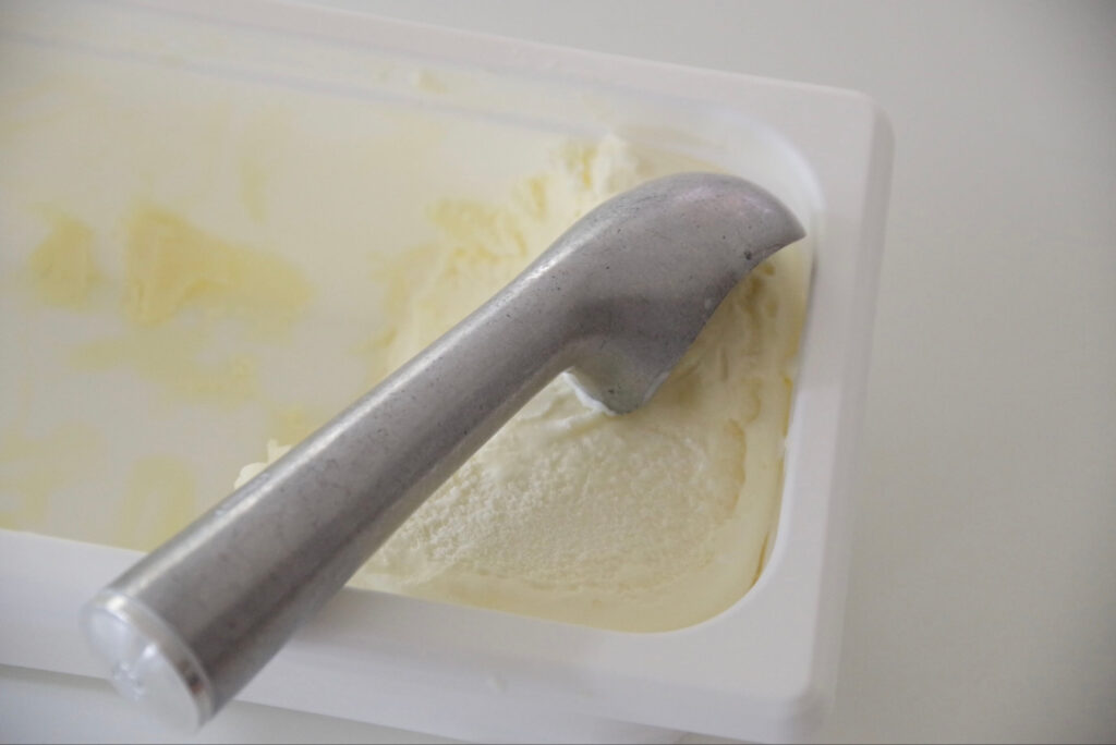 手の温度が素早くスコップに伝わるから、硬いアイスがするんとすくえます